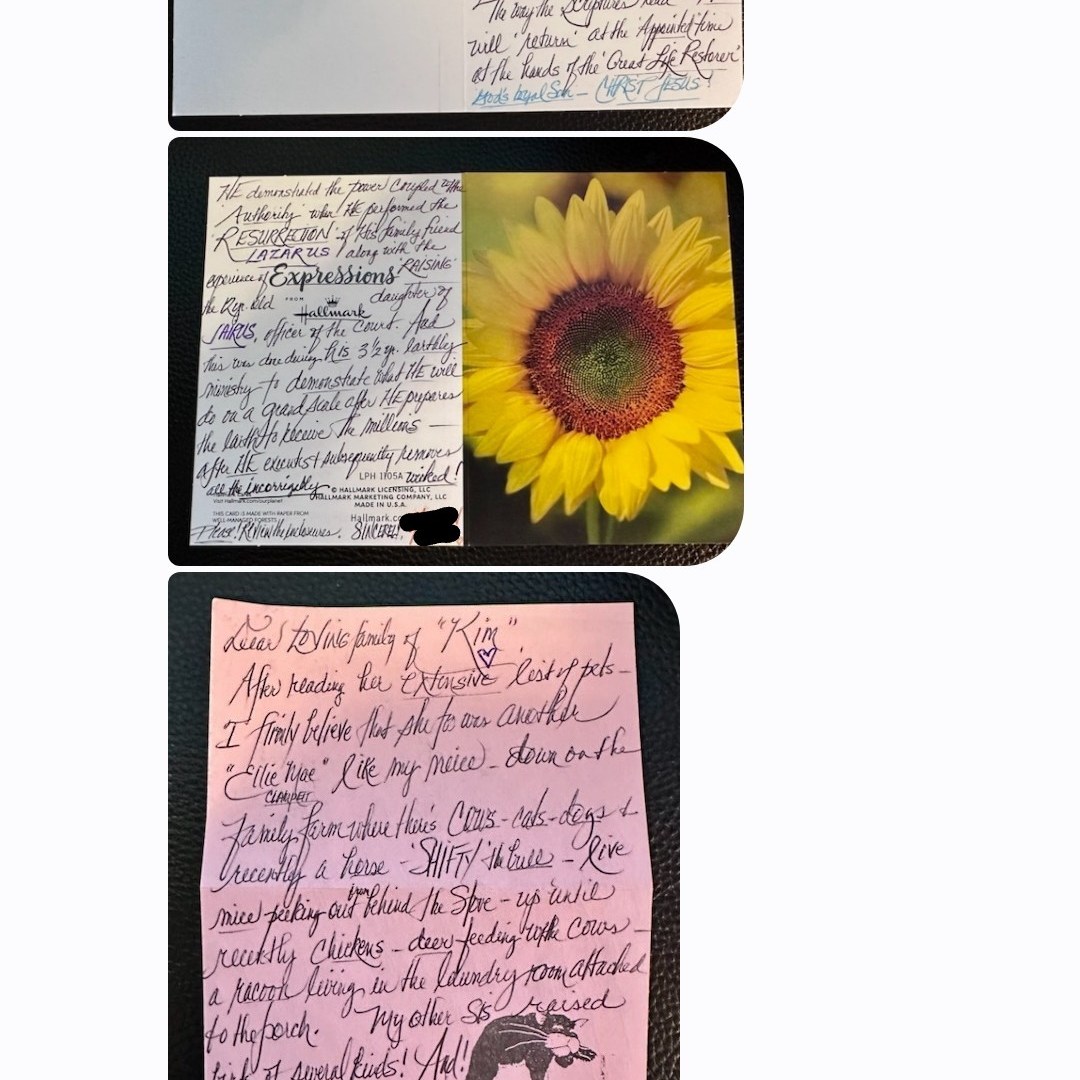 Well, apparently this is how. My Uncle sent a series of texts to the family group text, showing a sympathy card that he received in the mail from a mystery-sender. A giant sunflower was on the cover of the card! As if that wasn’t freaky enough, when I Googled the mailing address to try to get more information about who the sender could be, the Captcha that came up asked me to choose the SUNFLOWERS. As many annoying Captcha tools as I’ve seen, usually crosswalks or bridges or traffic lights, I’ve never seen one for sunflowers before. I don’t think secret-AI-spy-phone-tools or Baader–Meinhof phenomenon can explain this anymore. The sunflowers are showing up in too many different places, in too many ways. I guess I shouldn’t be surprised anymore. God is God, after all! Never underestimate the creativity of the Creator!