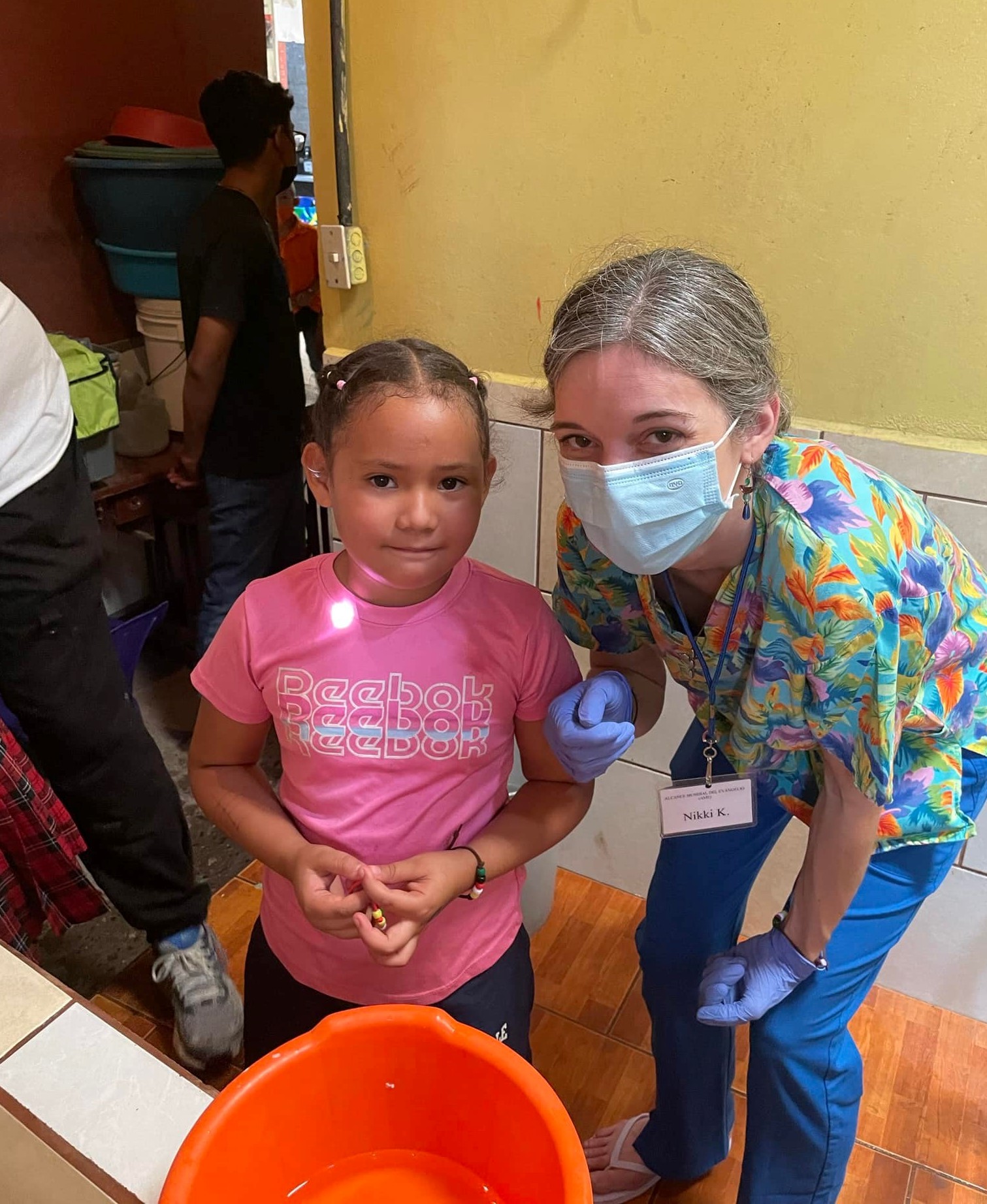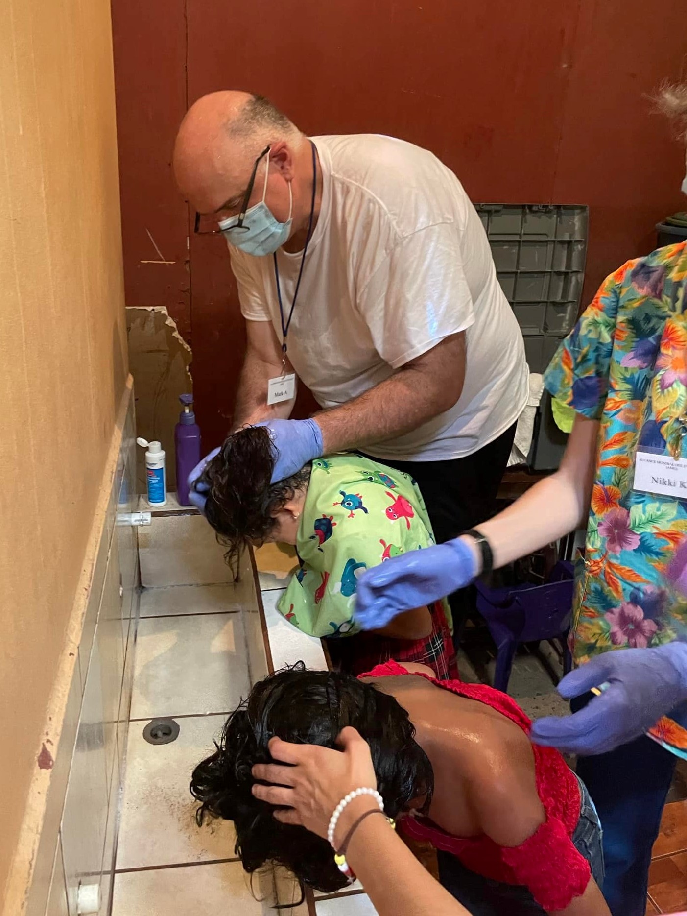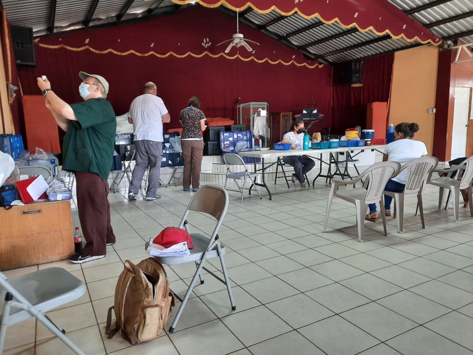 So, what exactly did we do? Well, besides getting the bus stuck on the first day… we stayed in a mission house run by World Gospel Outreach. The WGO staff were incredible, great exemplars of Christ’s character, full of love, joy, and peace. They included a couple who’d retired from their jobs as a band director and a teacher and had felt called to go and serve— so they went! A few younger couples coordinated and conducted local outreach and fundraising as well as preparing and packing the medications and supplies that we distributed. WGO provided a school bus and driver for our transport, as well as a local organizer and interpreters, as Honduras is primarily a Spanish-speaking country. Two local Honduran ladies prepared delicious meals for us every day.